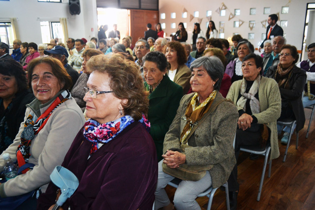Silvia Poblete Segovia, profesora jubilada y beneficiaria del programa MÁS del Cesfam Cardenal Caro, habló en representación de los más de 8000 adultos mayores que participan de esta loable iniciativa.
