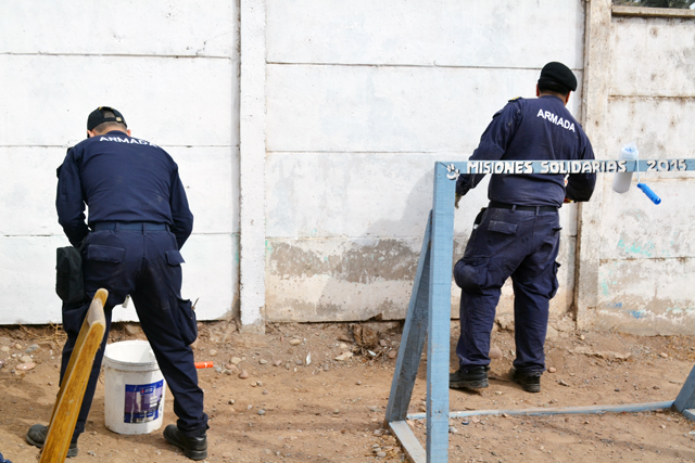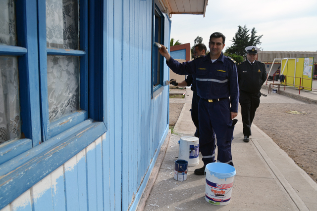Contenta y agradecida se encontraba la comunidad educativa del Colegio Rural Algarrobito, tras la noble labor realizada por contingente de la Fuerza de Submarinos, de la Gobernación Marítima de Coquimbo y del Buque de Transporte “Aquiles” de la Armada de Chile. La jornada transcurrió desde las 08:30 de la mañana hasta las 17:00 horas, tiempo en que personal de la marina, trabajó en el operativo de reestructuración y mejoras en las dependencias del establecimiento, correspondiente a implementación de una cancha con pasto sintético, reparaciones en techumbres, salas, y patio; trabajos en jardinería; entrega de nuevo mobiliario; y pintura y arreglo de puertas y muros.