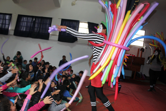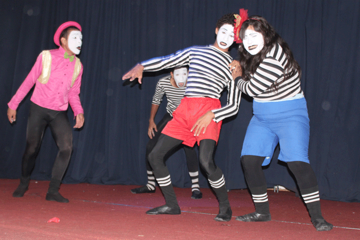 Especiales protagonistas fueron los integrantes de la Fundación Gestual Mimos Chile, quienes mediante una obra teatral y talleres con estudiantes, dieron realce, además, a la celebración del Mes del Teatro.