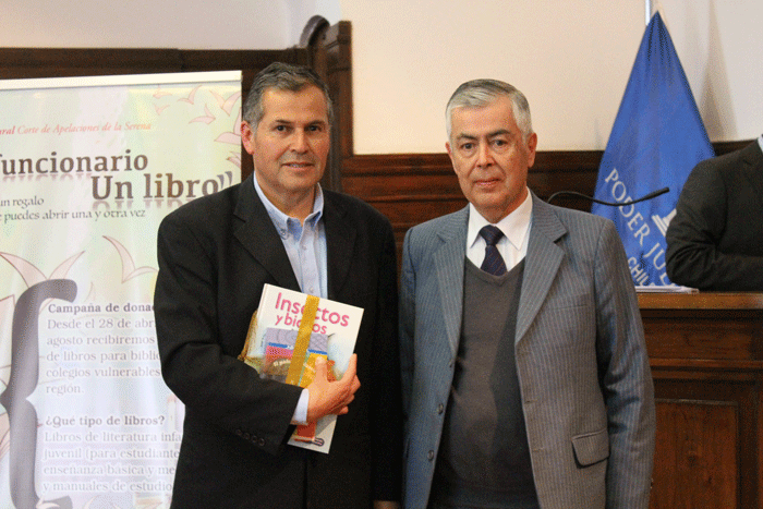 A su vez, y como gesto de gratitud por los textos donados, el coordinador de los microcentros de La Serena y profesor encargado del Colegio El Romeral, Juan Frívola Carvajal, regaló al presidente de la Corte de Apelaciones, un ejemplar del libro “Entre Duendes y Churrascas, Rescate de Mitos y Leyendas de las Zonas Rurales de La Serena”, texto fruto de la iniciativa de la Corporación Municipal Gabriel González Videla y financiado por el Consejo Nacional de la Cultura y las Artes, a través del Fondo del Libro y la Lectura.