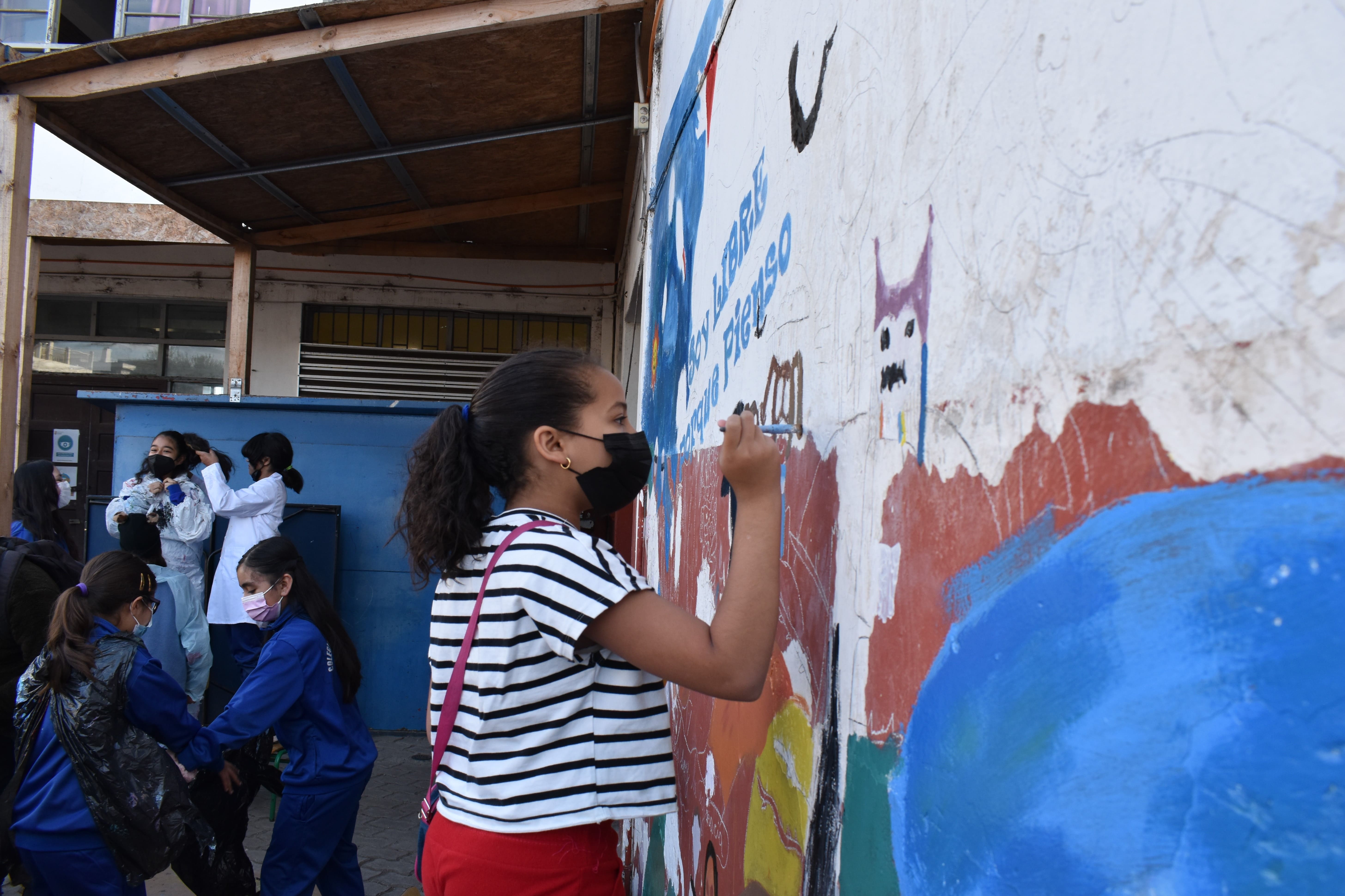 Ángelo Ricciardi Montenegro, profesor de artes visuales y tecnología del Colegio Javiera Carrera, relata parte del proceso del proyecto. “Hicimos este proyecto con dos asignaturas, de artes visuales y tecnología, en las que las estudiantes están mejorando los espacios del establecimiento y además están creando, interpretando arte y trabajando colaborativamente en un proyecto donde ellas han aportado con sus creaciones”. Además agrega, “lo trabajamos fotografiando los diseños y luego los traspasamos a un software para armar un montaje sobre una propuesta, que fue revisada por las estudiantes y aprobadas con la Dirección del colegio. En esto ha participado toda la comunidad escolar. Se han hecho colectas para pintura y materiales, hemos recibido cooperaciones. Sobre los beneficios de esta acción, Ricciardi destaca. “Los principales han sido la generación de la identificación con el establecimiento donde ellas se sienten participes de la construcción de un proyecto. Fortalecimiento del vínculo, generación de empatía con el trabajo de sus compañeras. Por ejemplo, cursos que han avanzado más rápido, han ayudado a otros que van más atrás y eso ha sido muy gratificante. La empatía, la solidaridad, desarrollo humano que es súper valorable, además de la valoración por el arte y el cuidado por su entorno”, concluye.