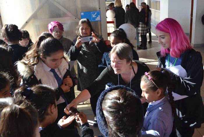 El secretario general de la Corporación Municipal, Patricio Bacho, en compañía de la directora del Departamento de Educación, Sandra Castro, valoró la estadía del grupo compuesto por 8 estudiantes (de entre 14 y 18 años), dos profesoras y una supervisora, por cuanto realizaron valiosas charlas científicas a sus pares de los colegios Coquimbito, Saturno, Pedro Aguirre Cerda y Javiera Carrera.