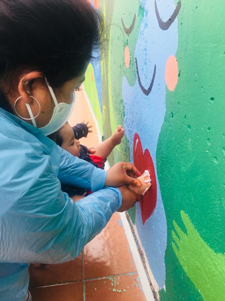 Sobre la intervención en los espacios y trabajo con la comunidad, Sandra Tacuma de ARTCC, indica. “Fue una experiencia mágica trabajar con el jardín. Mágico porque estábamos cerrando el proceso de postulación con FONDART con otro espacio, cuando nos contactaron desde el jardín. Vinimos y nos encantó. Nos interesa el trabajo con la comunidad, pero además de co-creación. Esto significa que no siendo artistas, hago una dirección, mas no influyo en el diseño, tomas de decisiones, en el pintar. Es una pequeña asesoría que vamos haciendo, pero quienes co-crean es la comunidad. Niños, apoderados, profesionales, muchos apostaron para esta co-creación. Las temáticas tienen que ver con el medio ambiente y la observación, mientras que el diseño del espacio de intervención de piso, es para que toda la comunidad, pueda acceder a jugar, respirar, sentarse, hay espacios para bailar. Es una herramienta de aprendizaje, intencionamos la secuencia de números, letras, de acuerdo a la edad de los niños”.