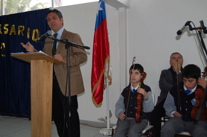 En representación de la Corporación Municipal Gabriel González Videla y de su secretario general Patricio Bacho Chávez, entregó su saludo al colegio la coordinadora comunal del Programa de Integración Escolar, Helen Tapia Cortés. La profesional se refirió al potente ejemplo inclusivo dado por el establecimiento, no sólo en el ámbito educativo, sino también laboral, ya que dentro de la unidad educativa trabajan tres exestudiantes: la profesora Marcela Arancibia González, la asistente social Palmenia Pizarro Campillay y el auxiliar Luis Carmona Carmona.