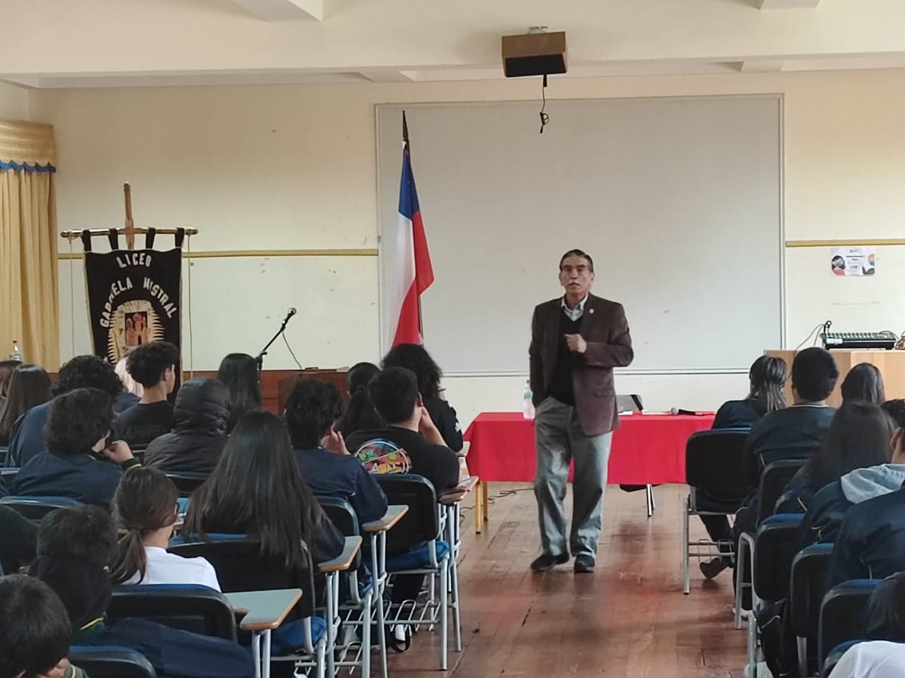En la región, destacados escritores han investigado el legado de la Premio Nobel. Uno de ellos es Héctor Herrera Vega, quien visitó a los estudiantes del electivo “Comprensión Histórica del presente” (3° medio) con el profesor Rodrigo Castillo. La actividad, denominada “Gabriela viajera consciente en Chile y el Mundo”, coordinada con el Departamento de Patrimonio y Cultura, permitió abrir un espacio de conversación acerca de Mistral pero respecto a sus reflexiones y cómo estas trascienden a nuestros tiempos. El escritor Herrera relató a los estudiantes los puntos más relevantes de sus investigaciones en las esferas educativa, política, literaria y personal, donde los alumnos y alumnas del electivo, junto a los profesores presentes, relacionaron su obra y pensamiento con los hechos históricos del país.