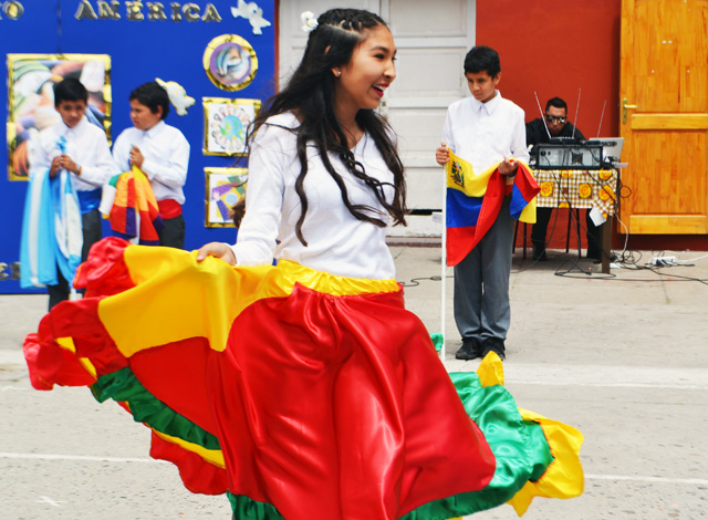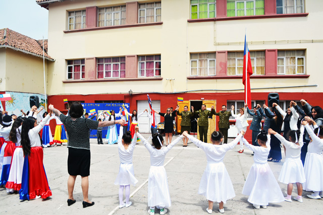 Los números artísticos estuvieron cargados de colorido y emotividad, y fueron presentados por estudiantes pertenecientes a diferentes culturas. La canción de We are the World o Nosotros somos el mundo fue interpretada por estudiantes de pre kínder, kínder y 5to año básico, como muestra del respeto que existe hacia la diversidad cultural. Asimismo, como momento solemne, se entregó la reseña histórica del colegio dicha por Nicolás Godoy, inspector del colegio, realizándose, también, el traspaso de estandartes, como símbolo de los valores del establecimiento. Cerraron la jornada, estudiantes de 3ero, 4to y 6to básico con el baile Latinoamérica un sendero distinto, uniéndose a la intervención artística representantes de las distintas instituciones convocadas al importante acto.