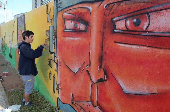 “Está muy bien la idea, porque todos los consultorios tienen muro, pero rayados. Y nosotros buscamos recuperar esos espacios. En nuestra pintura quisimos representar a la juventud con la salud. Yo, por mi parte, quise representar a los pueblos originarios, inspirado en mi ascendencia mapuche”, señaló Felipe Segovia.