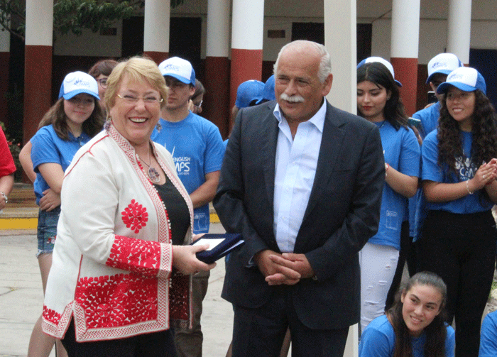 Era la Presidenta de la República, Michelle Bachelet Jeria, quien en compañía de autoridades nacionales, regionales y comunales, se hizo presente para acompañar a los estudiantes en esta instancia que busca fortalecer en ellos el dominio del idioma Inglés, como parte de la Reforma Educacional impulsada por el Gobierno.