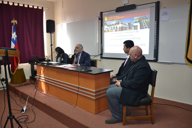 De la ceremonia participaron integrantes de la agrupación orquestal junto a su director, Rodrigo Aliaga Ramírez, el secretario general de la Coporación Municipal Gabriel González Videla, Patricio Bacho Chávez, y la rectora del emblemático establecimiento, Oriana Mondaca Rivera, quienes firmaron el convenio de colaboratividad del Yoa.