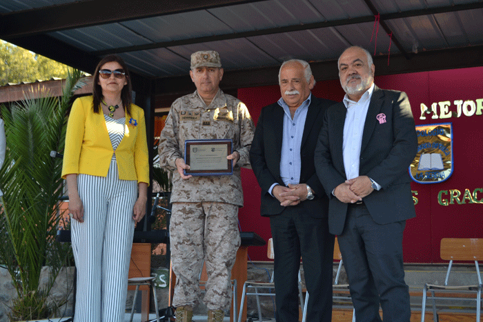 Diversas muestras de gratitud por los importantes trabajos que han permitido mejorar las condiciones en que se educa a 181 estudiantes y en las que laboran 18 docentes y 16 asistentes de Educación, entregó la comunidad educativa del Colegio Quebrada de Talca al alcalde de La Serena y presidente de la Corporación Municipal Gabriel González Videla, Roberto Jacob Jure, y al Regimiento de Infantería Nº 21 “Coquimbo”, representado por su comandante, teniente coronel Manuel Herrera Fredes.
