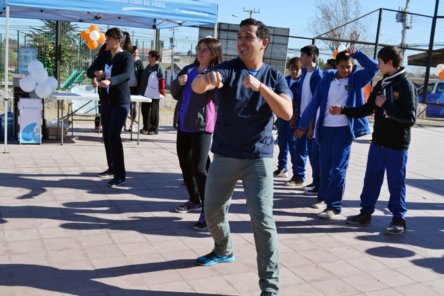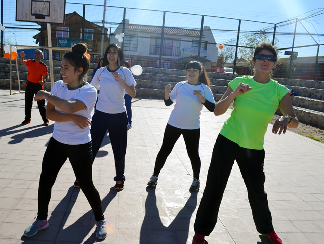 En la multicancha de la Villa El Indio de la comuna de La Serena, el equipo de profesionales del Cesfam Cardenal Caro y del Cecosf, organizaron la denominada “Zumbatón”, donde se sumaron estudiantes del Colegio José Miguel Carrera a participar de la exitosa jornada, en conjunto con otros establecimientos educacionales y los mismos funcionarios de los centros de salud. Los alumnos y alumnas, además, recibieron hidratación y la entrega de colaciones saludables.
