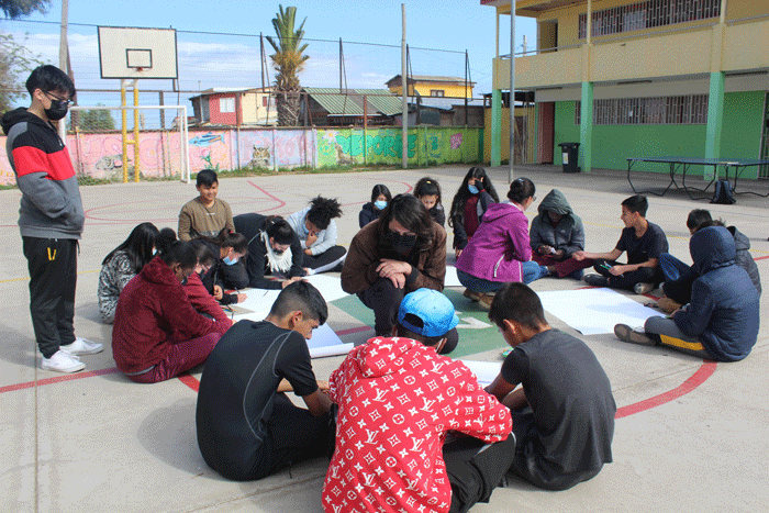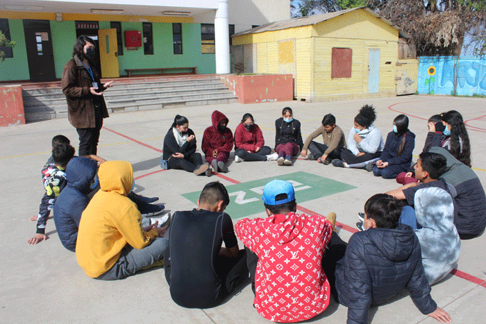 Heralio Solis, psicólogo de “Familias Fuertes”, detalló que, en el caso del establecimiento del sector Las Compañías, “se ha estado trabajando en la realización de un ciclo de talleres que concentra entre 4 a 7 sesiones. Por ejemplo, hoy, con los estudiantes de 7mo básico, hemos abordado la prevención del consumo de drogas, con una dinámica de promoción de factores protectores, en la cual, mediante producciones artísticas, los chicos comparten ideas sobre cómo pueden protegerse del problema de las drogas”.