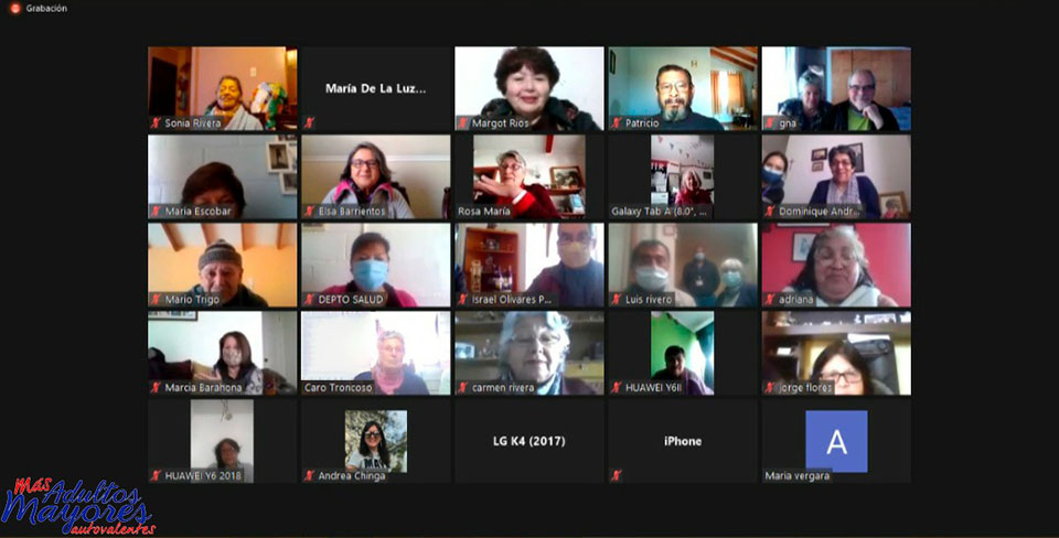 Ejemplo de este acompañamiento y comunicación activa que mantienen los profesionales de esta iniciativa del Ministerio de Salud y ejecutada por el Departamento de Salud de la Corporación Municipal Gabriel González Videla, con los usuarios del programa MÁS que, a pesar de la brecha digital, lograron conectarse vía zoom con más de 37 adultos mayores de distintas organizaciones sociales de la comuna.