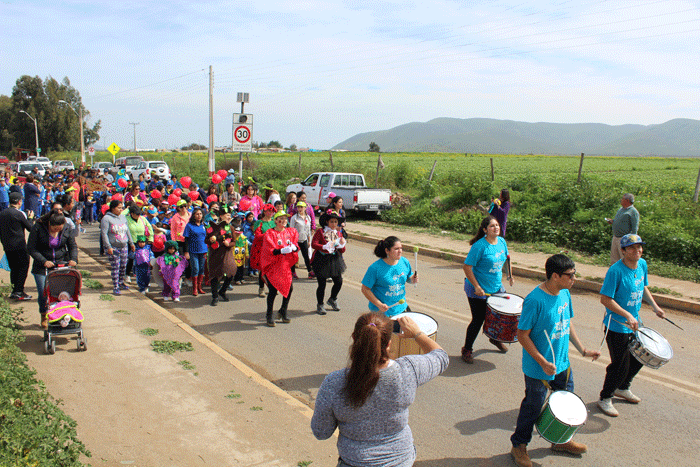 Los habitantes de El Romero se congregaron en gran número en el establecimiento educacional, para luego caminar, animados con una batucada, hacia la plaza de la localidad.