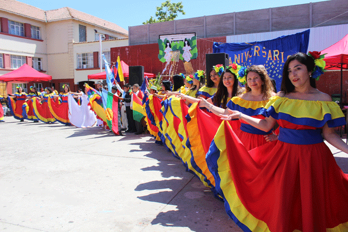 La ceremonia tuvo como gran cierre la presentación de una puesta en escena, denominada “América, Continente de Emociones”, número artístico que llenó de colorido, música y danza latinoamericana el patio del establecimiento.
