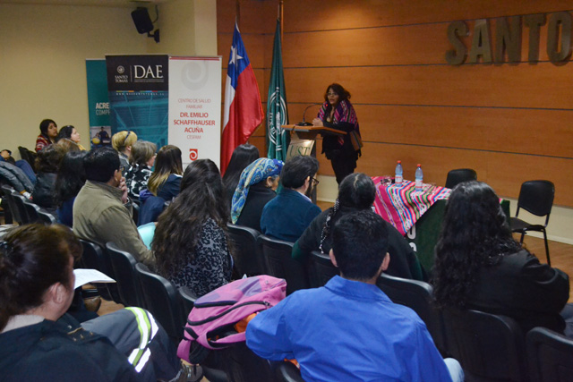 La jornada se inició con una rogativa realizada en el patio central de la institución y contó con la enriquecedora e interesante exposición de las monitoras mapuches, Karina Manchileo y Juanita Huenufil, sobre su exitosa experiencia con Medicina Ancestral, incorporada en la Atención de Salud Primaria de la comuna de La Pintana y que además, se ha replicado en otras comunas de la capital del país.