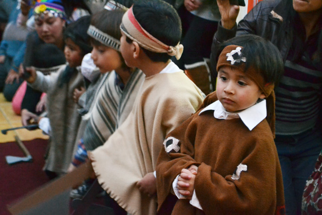 El sello de la jornada lo colocaron los párvulos de sala cuna y niveles medio menor y mayor, quienes mostraron identificarse con la diversidad cultural de los pueblos originarios, mediante presentaciones artísticas relacionadas con el culto a la naturaleza o pacha mama. Danzas orientadas a la divinidad diaguita, a la cosmovisión de Rapa Nui, al rito mapuche, y a la cultura aimara con el baile “aukaman el cóndor”.