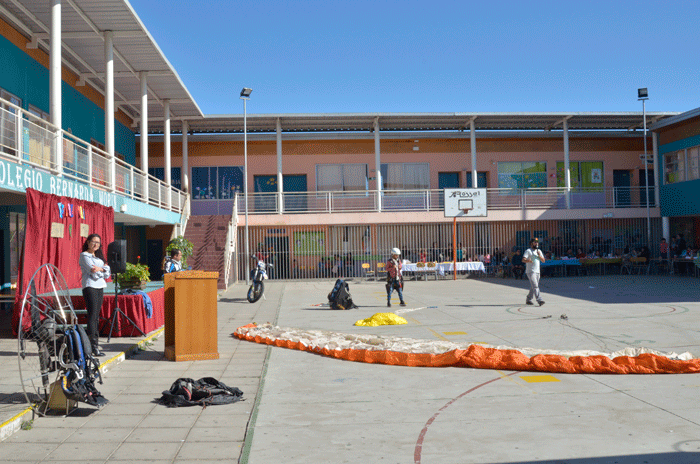 Una charla motivacional y una muestra de deportes extremos, a cargo de los deportistas Nicolás Rojas, de Parapentes Yanay, y Jorge Godoy, motociclista enduro, se robaron la atención de los estudiantes, actividad en la que también participaron profesores, asistentes y apoderados.