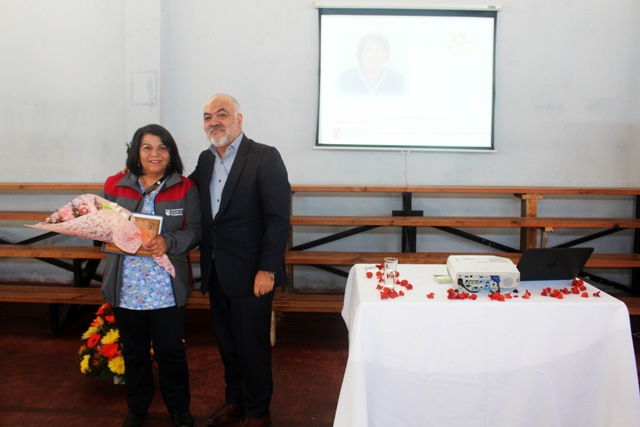 Asimismo, tras el importante trabajo desarrollado por el establecimiento de salud dependiente de la Corporación Municipal Gabriel González Videla, se encuentra el compromiso profesional y humano de sus funcionarios y funcionarias, efectuándose un merecido reconocimiento a la trayectoria de 4 de sus legendarias trabajadoras que cumplen 35 años de servicio en la institución de salud pública, de parte del secretario general de la Corporación Municipal Gabriel González Videla, Patricio Bacho Chávez; de la directora del Departamento de Salud Municipal, Dra. Lorena Casarín Muñoz; del 1° director de la Asociación de Funcionarios de la Salud Municipal (AFUSAM), Carlos Fuster Gervasi, de sus compañeros de trabajo y colegas y de la comunidad.