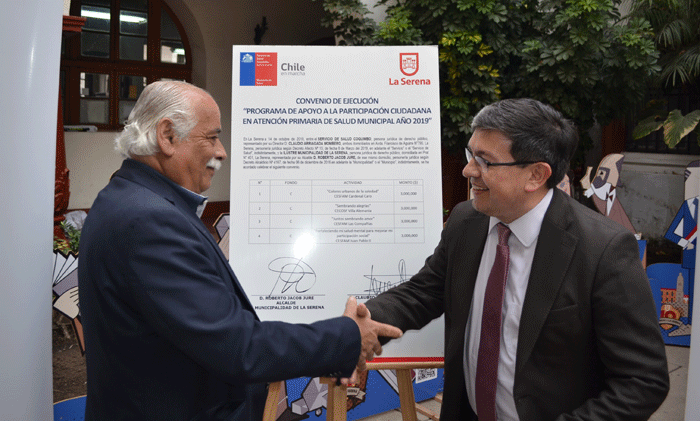 12 millones de pesos, que serán repartidos en partes igual para la ejecución de 4 proyectos de alto impacto comunitario, fueron entregados por el Servicio de Salud Coquimbo a la comuna de La Serena, en el marco del convenio “Programa de Apoyo a la Participación Ciudadana en Atención Primaria de Salud”, suscrito con el alcalde Roberto Jacob Jure.