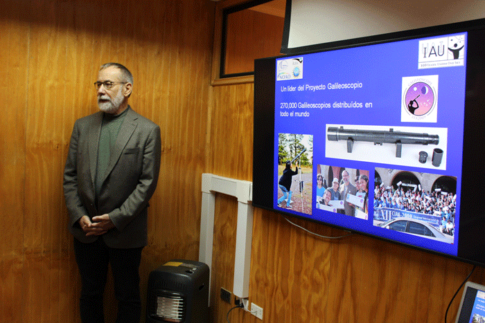 El científico norteamericano llegó acompañado de profesionales del centro astronómico, con el objetivo de promover que establecimientos educacionales de Chile, especialmente municipales de La Serena, se integren al prestigioso Programa “Escuelas Einstein”, dirigido a estudiantes de todo el mundo, con el fin de estimularlos y generar en ellos interés por la ciencia.