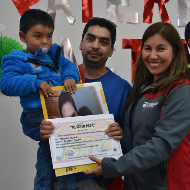 Joel Adonis Gutiérrez, asistió a la ceremonia, acompañado de su pareja Karen Larrondo Aravena y de su hija Valentina de 1 año y 4 meses de edad. “Es importante que incluyan a los padres en este tipo de iniciativas, como también se integran a las madres en otras actividades. El crecimiento de nuestros hijos, definitivamente es un proceso que se realiza entre dos, madre y padre, señaló.