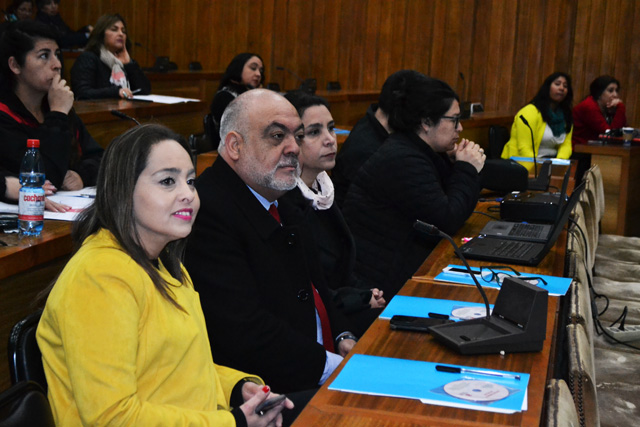 La jefa de Salud Municipal entregó las palabras de apertura del evento de APS, acompañada del secretario general de la Corporación Municipal, Patricio Bacho Chávez y de la directora del Departamento de Educación, Sandra Castro Carvajal, quien también, dirigió un mensaje a funcionarios del área.