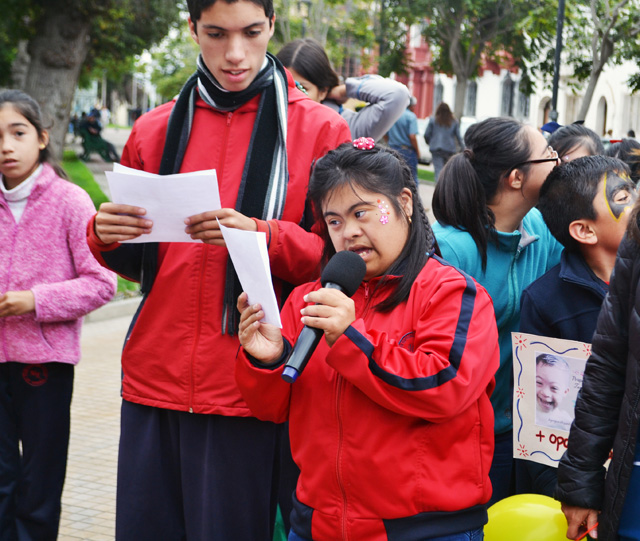 “La comunidad educativa de nuestro colegio quiso hacerse presente en la celebración del Día Internacional de las personas con Síndrome de Down, porque en nuestra población estudiantil, tenemos alrededor de 40 niños y jóvenes con Síndrome de Down y fundamentalmente queremos visibilizar que tienen los mismos derechos a educarse, a trabajar, a jugar y a ser considerados por la sociedad”, señaló Marcela Góngora, directora del Colegio Manuel Rodríguez.