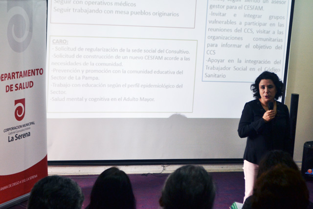 Con la participación de la directora del Departamento de Salud Municipal, Dra. Lorena Casarín Muñoz, se dio el vamos a una Segunda Jornada Comunal de Consejos Consultivos y Mesas Territoriales en el marco del Plan de Promoción de Salud para definir los ejes centrales de trabajo con proyección a 2018, la que se desarrolló en dependencias del Colegio Javiera Carrera. La profesional, lideró la reunión, entregando un fraternal saludo de parte del alcalde de La Serena, Roberto Jacob Jure, y del secretario general de la Corporación Municipal Gabriel González Videla, Patricio Bacho Chávez.