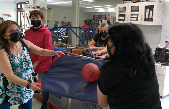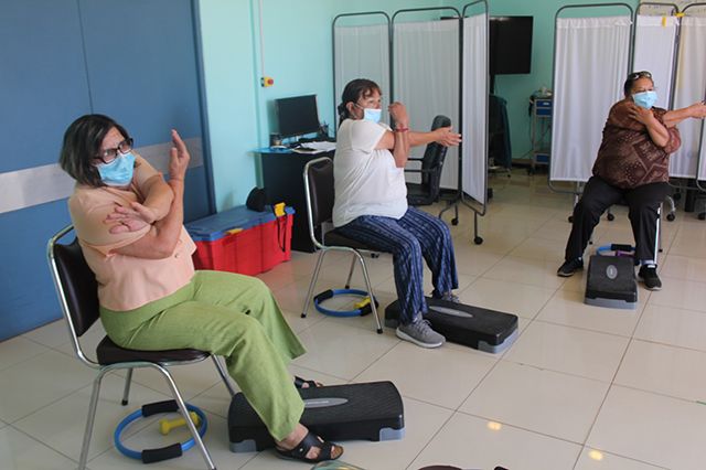 Así mismo, en el otro lado de la ciudad, Juana Estay, usuaria de la Sala de Rehabilitación del Cesfam Pedro Aguirre Cerda de La Antena, señaló en plena sesión de ejercicios que “hemos estado participando durante mucho tiempo en esto (…) esta rehabilitación es al 100%, tanto los profesionales como los implementos”.