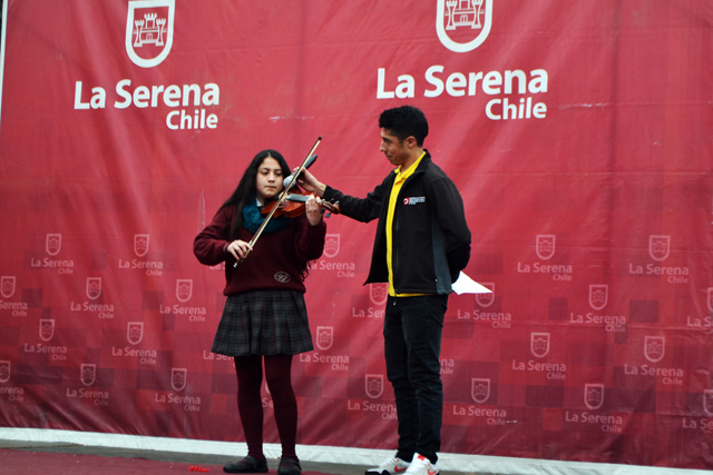 “Es una buena instancia para trabajar en la prevención y quise colaborar con lo que sé hacer, tocar el violín, representando a mi establecimiento”, expresó Abigail Mella Márquez, alumna de primero medio del Colegio Gabriel González Videla