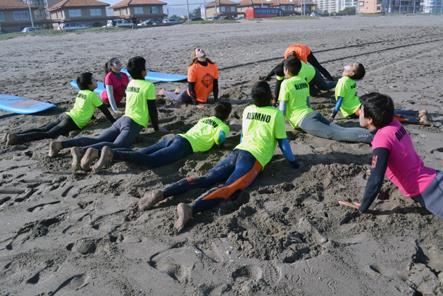 “Realizamos un precalentamiento donde nos enfocamos en enseñar la parte teórica del surf, las técnicas, movimientos, giros, y cómo reaccionar en caso de alguna emergencia. En lo práctico, los alumnos, ya en el agua ponen en marcha lo aprendido acompañados lógicamente de sus instructores. Además, muchos de ellos me han manifestado sus ganas de seguir practicando, pero lo ven de una manera inalcanzable, porque es muy costoso, por ello se generan estos espacios para generar estas instancias que van en beneficio y aportan al crecimiento personal de los niños”.