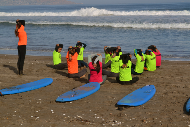 Los estudiantes practican en la Avenida del Mar de La Serena, lugar donde realizan un pre calentamiento, enseñando las técnicas y movimientos del Surf, sumado a valores que aprenden durante el proceso, tales como, el compañerismo, la responsabilidad, el respeto por el mar, y el cuidado de los espacios naturales, además del importante uso del bloqueador antes de exponerse a los rayos UV.
