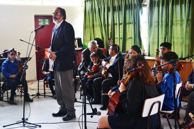 La ceremonia estuvo presidida por el talento artístico de la orquesta escolar, integrada por alumnos y ex alumnos del establecimiento, y por las afectuosas palabras de la directora del colegio, María Soledad Hernández, quien calificó como positiva la recepción de parte del alumnado para con este programa de fomento lector.