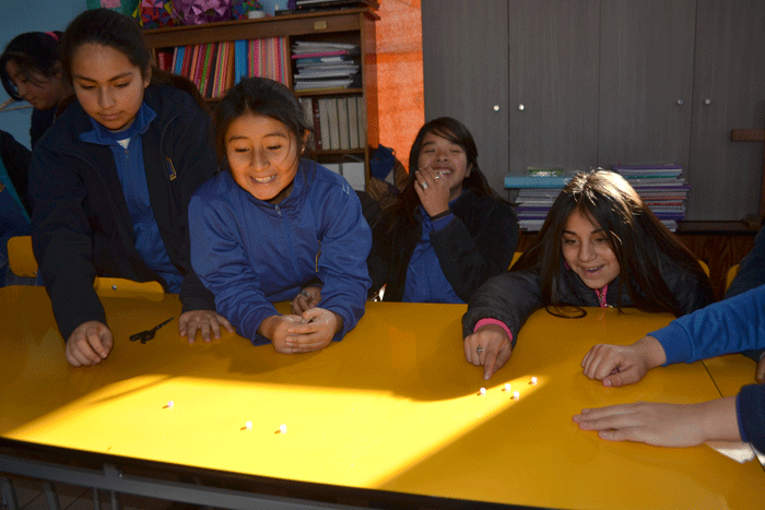 El primer colegio escogido por la delegación norteamericana fue el Colegio Javiera Carrera, donde sus estudiantes presenciaron un ameno y enriquecedor taller sobre astronomía.