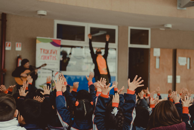 La actividad tuvo de protagonistas a la Compañía Tricawe Cuentos, quienes compartieron historias y adivinanzas musicales con los niños y niñas presentes. En la oportunidad, fueron obsequiados, gracias al apoyo de la editorial Ocho Libros, ejemplares del cuento “El encuentro espacial de Garrita” con la intención de que los alumnos se acerquen por iniciativa propia a la lectura y sirvan de puentes para compartir este hábito en sus hogares.