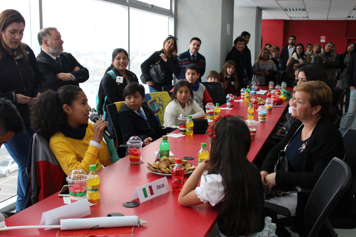 Una treintena de niños y jóvenes provenientes de 15 países de América, Europa y Asia, la mayoría vistiendo los trajes más representativos de su cultura y folklore, acudieron este 23 de agosto a la cita convocada por el alcalde Roberto Jacob Jure, con la intención de expresarles su alegría y satisfacción por elegir, junto a sus familias, a La Serena como lugar de residencia, como también valorarles el haber escogido a los colegios municipales de la comuna para continuar sus estudios y proceso formativo.