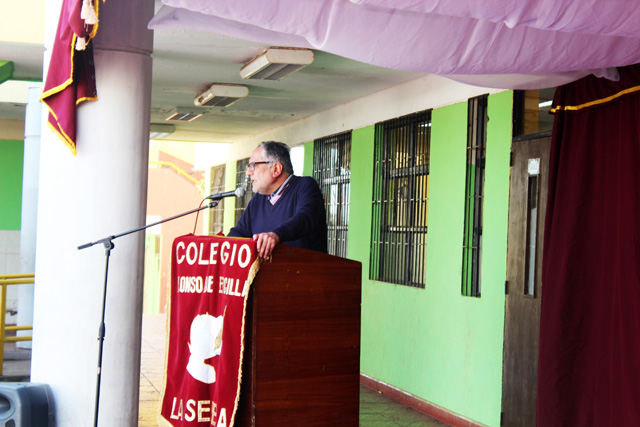 José Suazo Villalón, coordinador del Área de Educación de la Corporación Municipal Gabriel González Videla, en representación del alcalde Roberto Jacob Jure, del secretario general, Patricio Bacho Chávez y de la directora del Departamento de Educación, Sandra Castro Carvajal, entregó un motivador mensaje dirigido a la comunidad educativa del Colegio Alonso de Ercilla.