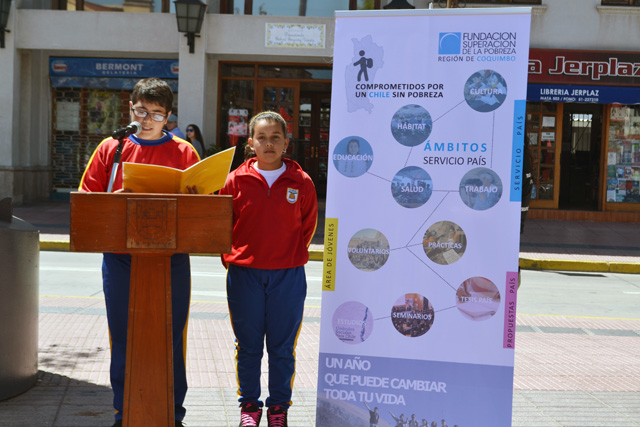 La iniciativa denominada “Feria Servicio País, lo mejor de lo nuestro”, es una actividad organizada por la Municipalidad de La Serena, y el programa social Servicio País, en el marco de la celebración del Día Internacional de la Erradicación de la Pobreza, donde fueron invitados los alumnos de 7° básico del Colegio Lambert, Felipe Contreras y Constanza Labarca, para compartir su experiencia sobre el cuidado del medio ambiente.