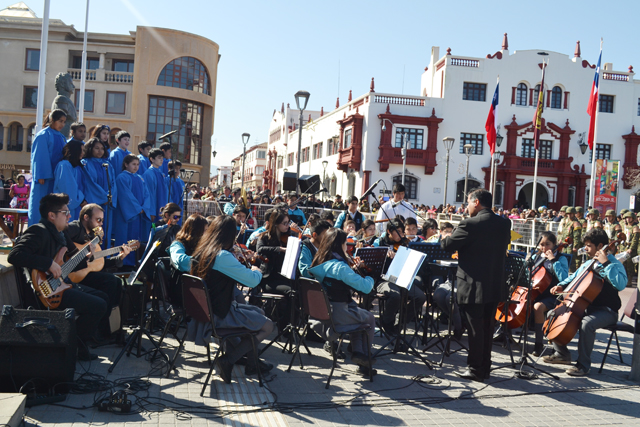 Una de las intervenciones artísticas más destacadas, fue la de la Orquesta Sinfónica del Colegio Pedro Aguirre Cerda, que interpretaron el himno de la ciudad, como también de otras piezas musicales. Y del especial recorrido, realizado por la Asociación de Discapacitados Raúl Silva Henríquez, y la banda de guerra escolar del Colegio Héroes de la Concepción.