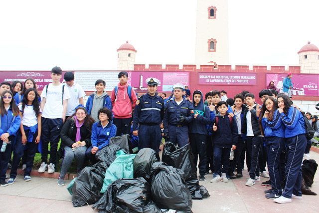 Finalmente, los escolares, orientados por sus respectivos docentes, hicieron registro de los residuos encontrados y, para sellar la jornada, se tomaron una fotografía masiva en el frontis de El Faro.