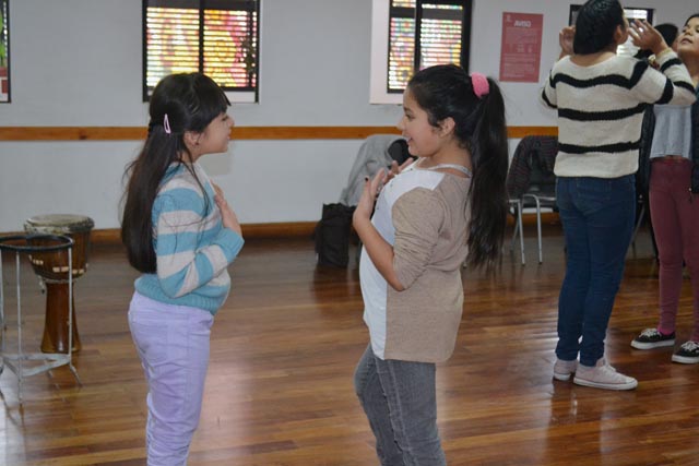 La rutina dirigida por la sicóloga, directora y actriz de Teatro Espontáneo, Carla Godoy Marín, corresponde a una propuesta de creación y esparcimiento colectivo, donde sus participantes, en especial niños y niñas, tienen la posibilidad de aprender las técnicas del sicodrama o drama terapia.